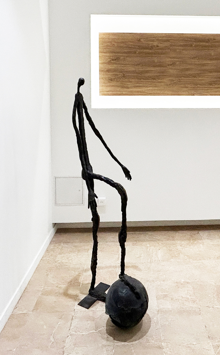 Dominique Doerr sculpte sa vision de notre monde. À la manière de Saint-Exupéry dans Le Petit Prince, ses planètes ne sont peuplées que d’un unique habitant, disproportionné par rapport à la superficie de ces dernières.
